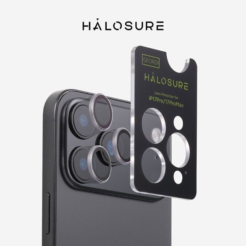 Protect your iPhone 17 Pro or 17 Pro Max camera lenses with the Halosure Geordi Armour Protector, featuring anti-reflection coating for clearer, glare-free photos and videos.