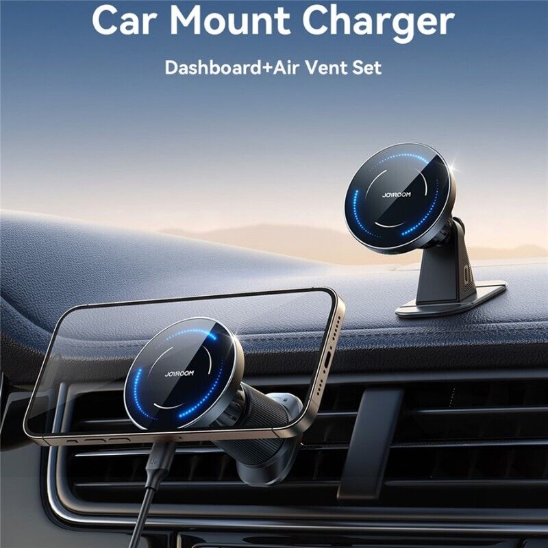 The JoyRoom JR-ZS502 is a wireless charging car mount designed for secure phone holding and convenient charging while driving. It supports up to 15W Qi wireless charging and features MagSafe-compatible magnetic alignment to keep devices firmly in place.