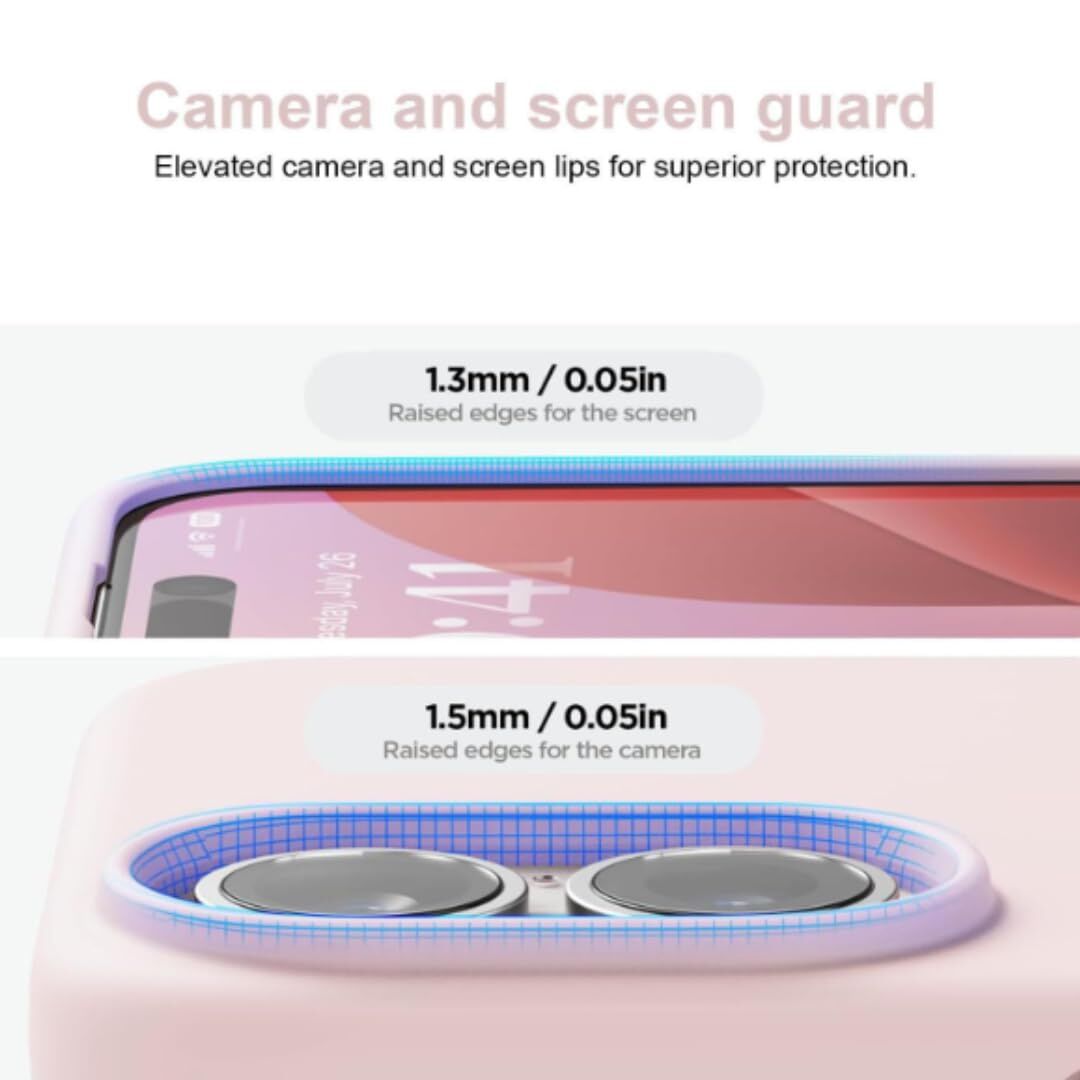 • Higher raised edges strongly protect the protruding camera and phone screen from drops, bumps, and face-up or face-down impacts.