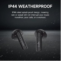 IP44 rated splash-proof design, meaning rain or sweat will not interrupt your music marathon, your calls, or a workout.